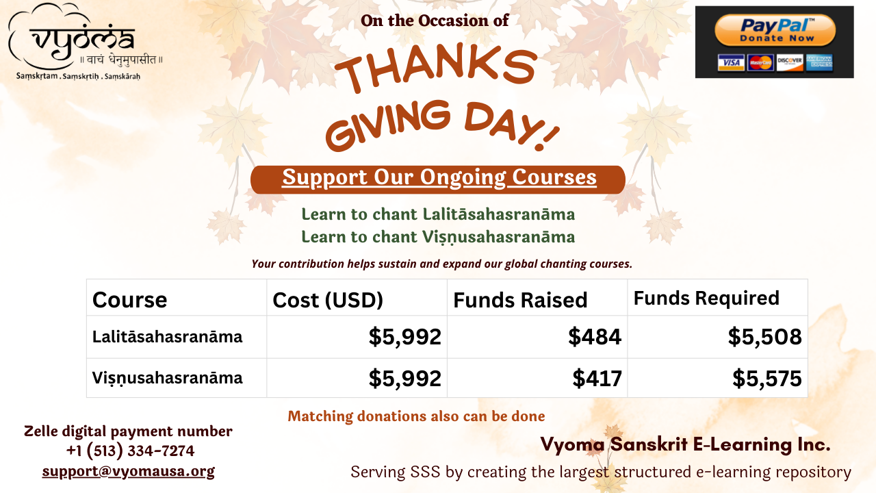 Through an E-learning approach, Vyoma Sanskrit E – Learning Inc. achieves to connect teachers, learners, experts and other members who have interest in learning Sanskrit through E – Learning technologies and other electronic mediums that enables preservation of this ancient language system.